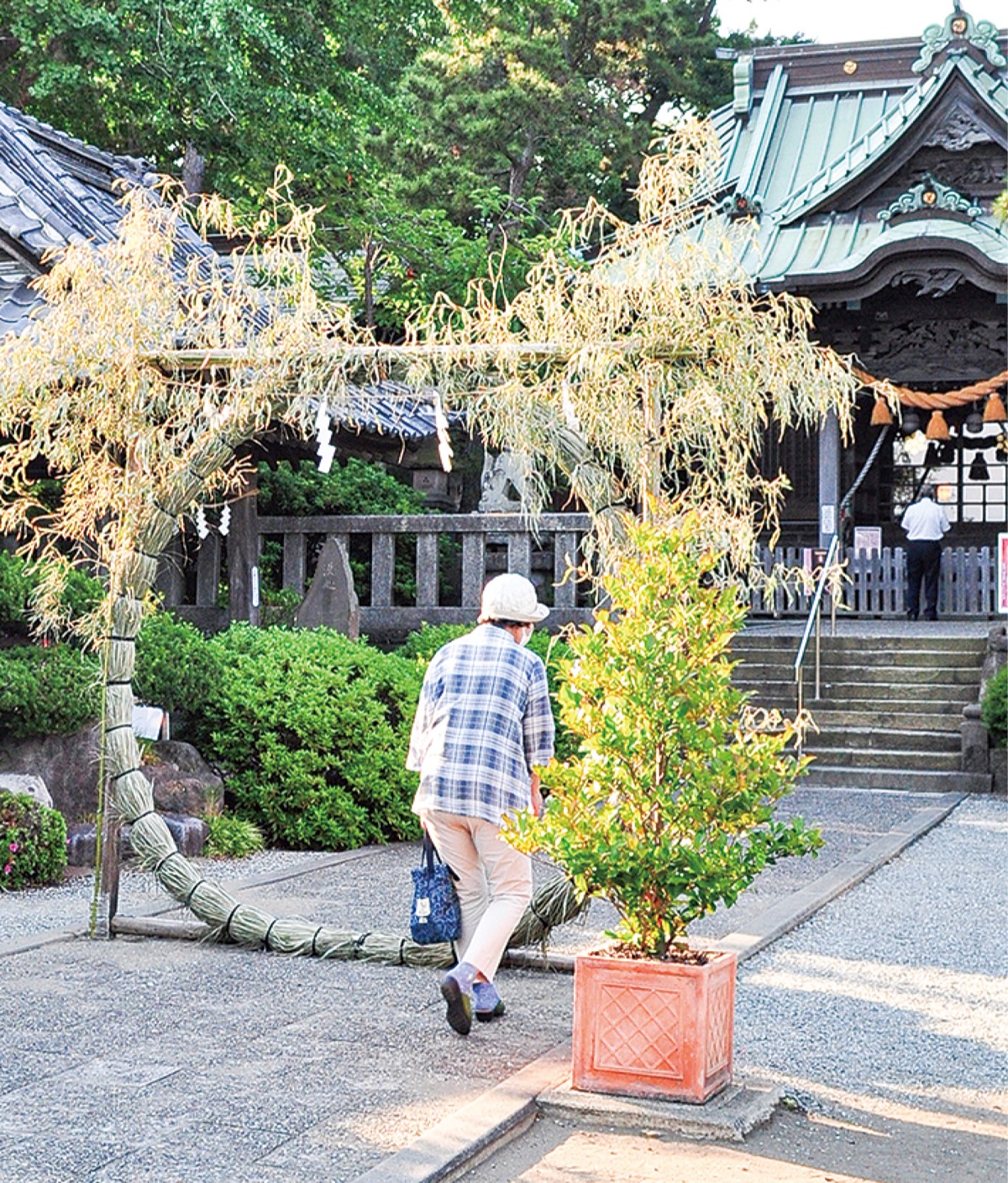 十間坂の第六天神社(櫻井明彦宮司)で6月30日、正月から半年間のけがれをはらい、残り半年の厄よけや健康を祈る神事「夏越の大祓(なごしのおおはらえ)」が行われた。