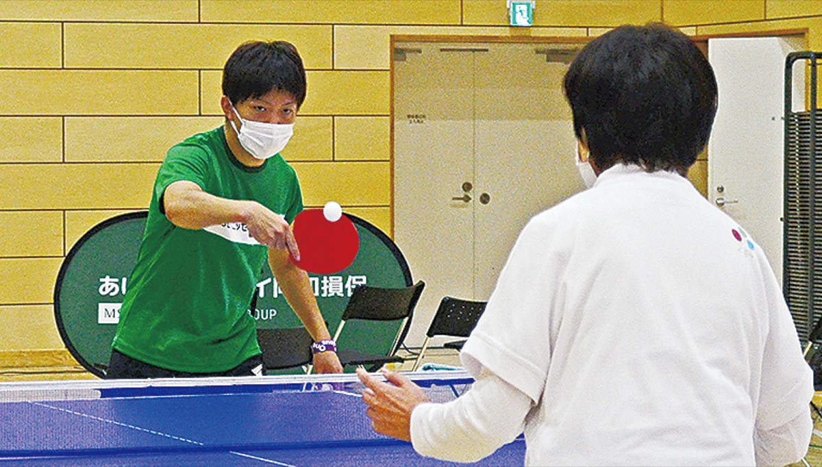 サーブやスマッシュなど技の実演に続き、参加者とラリーで交流も図った。部活動で卓球を始めたばかりという中学1年生2人は「日本代表選手のオーラがあった」「返しやすい球を打ってくれたので、ラリーが続いて楽しかった」と話した。