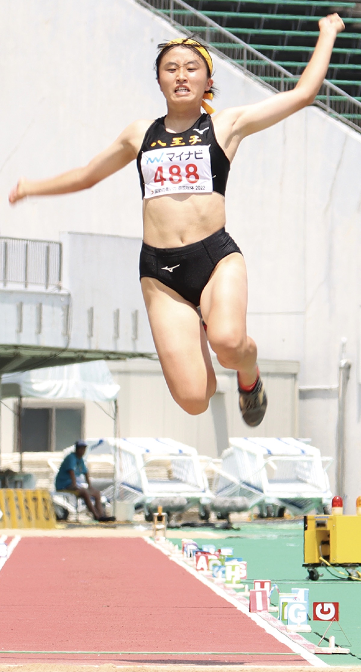 中村さんは中学3年時に県大会の走幅跳で優勝するなど好成績を残し、全国中学校体育大会(全中)にも出場できる記録を持っていたが、コロナの影響により大会が中止に。総体出場を掲げ、走幅跳で昨年の東京五輪6位の橋岡優輝選手を輩出した八王子高に進学。2年生で有言実行を果たした。