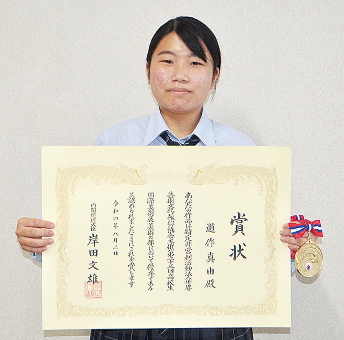 顧問の萩谷千春教諭は遊作さんについて「素直で周りの意見を聞く心がある。そのアドバイスに自分の考えを反応させ、どんどん成長した結果が受賞につながった」と称える。