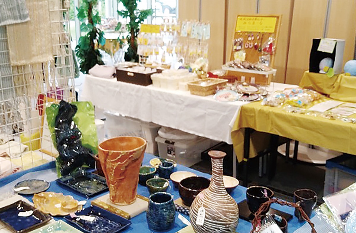 期間中は市内の福祉施設に通う利用者が作った陶芸作品や編み物、塗り物、絵画、木工作品などの自主製品を販売する。