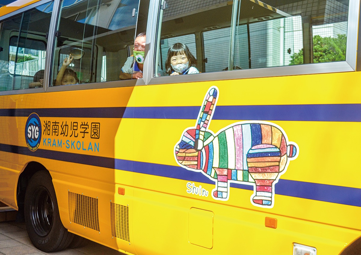 湘南幼児学園(汐見台・田中重徳社長)のバス「うさぎ号」に障害者アーティストが描いたイラストがこのほど採用され、好評を博している。