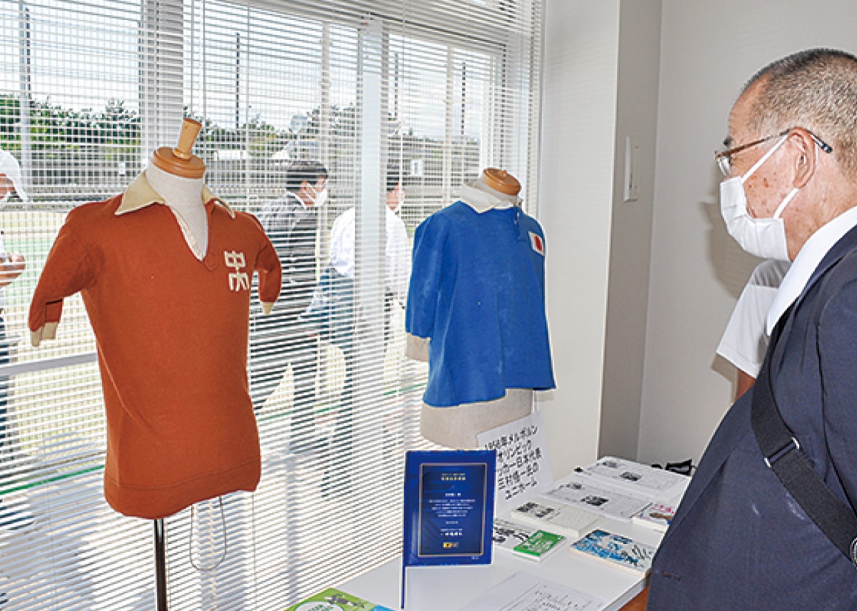 クラブハウスではメルボルン五輪に出場した際のユニフォームなど、三村さんゆかりの品が数多く展示された。