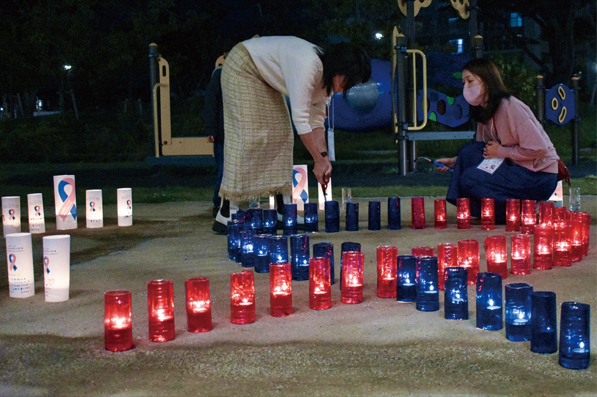 毎年10月9日から15日まで設けられている国際的な啓発週間「ベイビー ロス アウェアネス ウィーク」の最終日にキャンドルを灯す「Wave of Light」に合わせて行ったもの。今回初めて実施し、約100個のキャンドルが灯された。