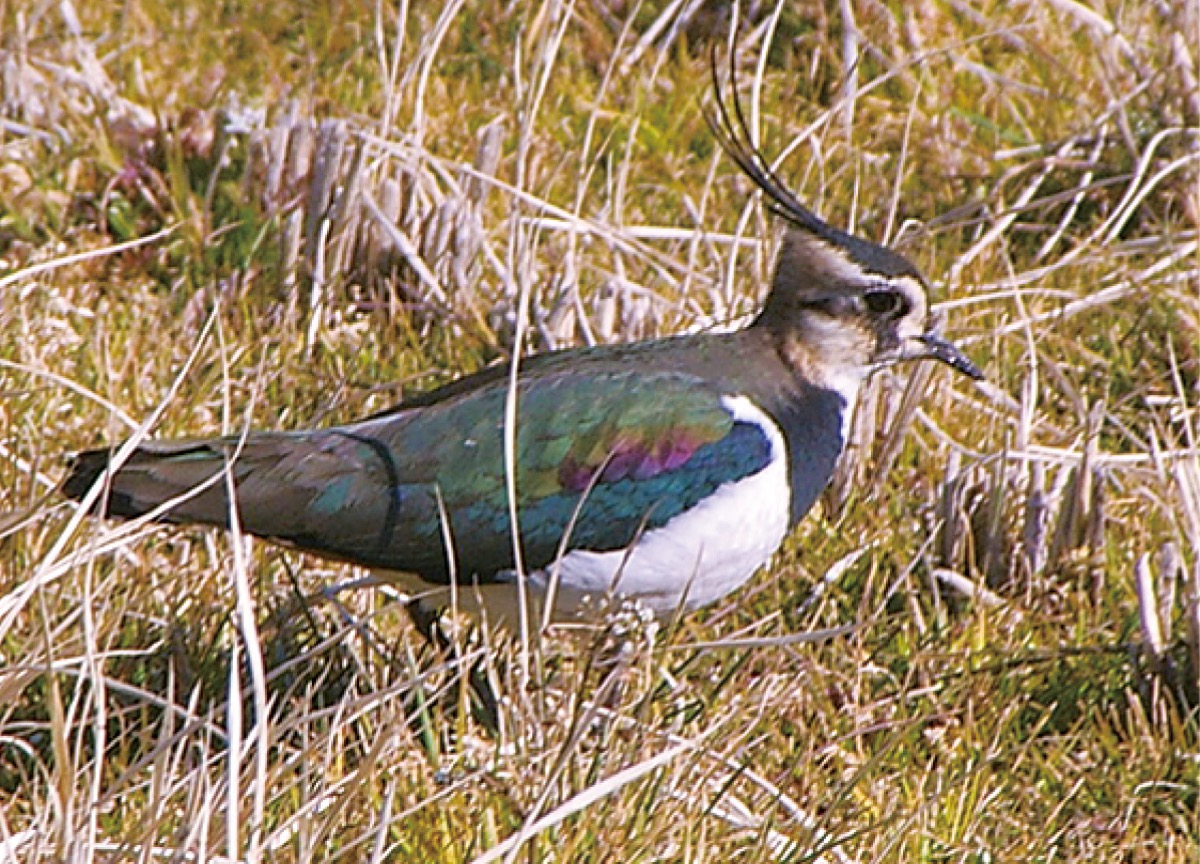このはく製の鳥は「タゲリ」と言います。日本で越冬するためにユーラシア大陸の中緯度から渡って来る冬鳥で、10月下旬〜3月上旬ごろまで滞在します。地面が適度に湿っている湿地を好み、水田や休耕田などの農耕地に群れで飛来します。