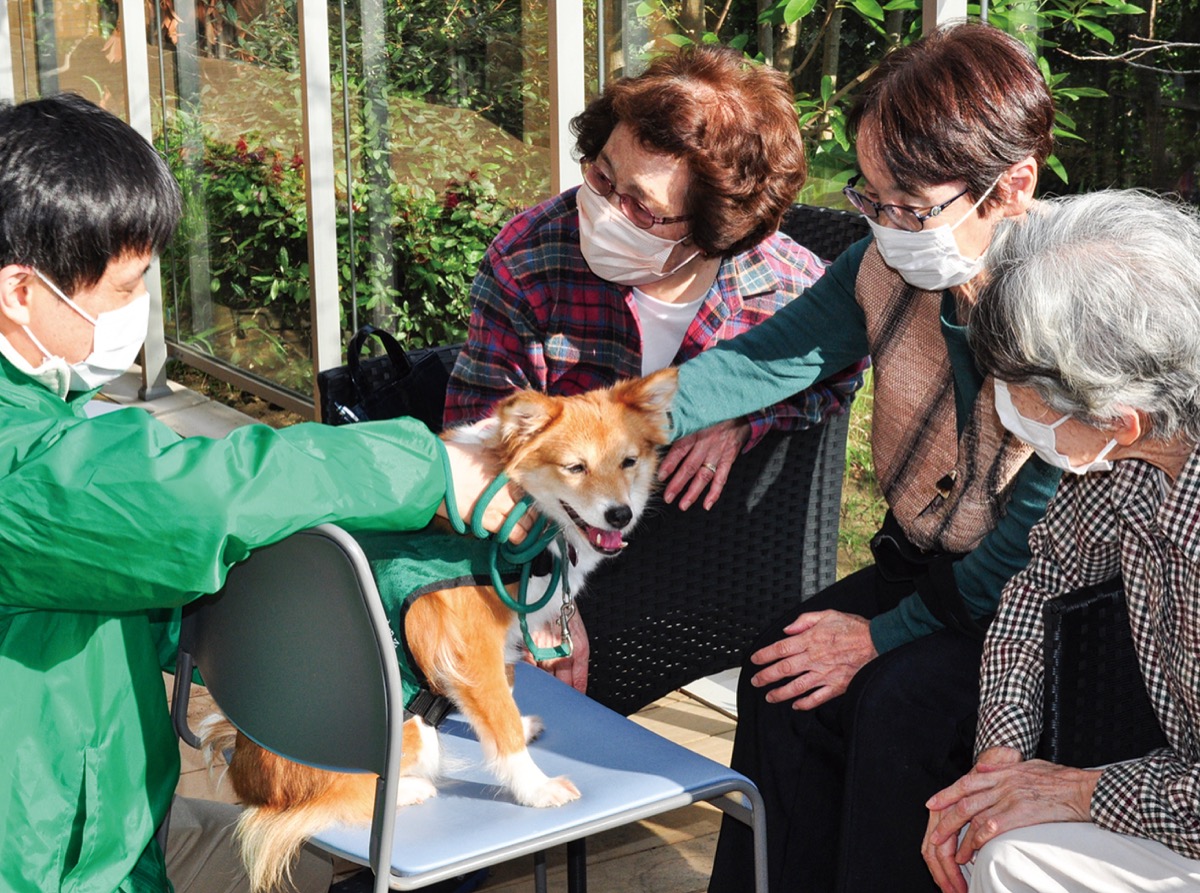 同ホームでの取り組みは、協会に寄付を行う市内在住の中村朋子さんの父親が入居者だったことから、今年度から実施。中村さんは「ワンちゃんと触れ合える機会は少ないと思うので、皆様の癒しの時間になっていただければ」と話した。