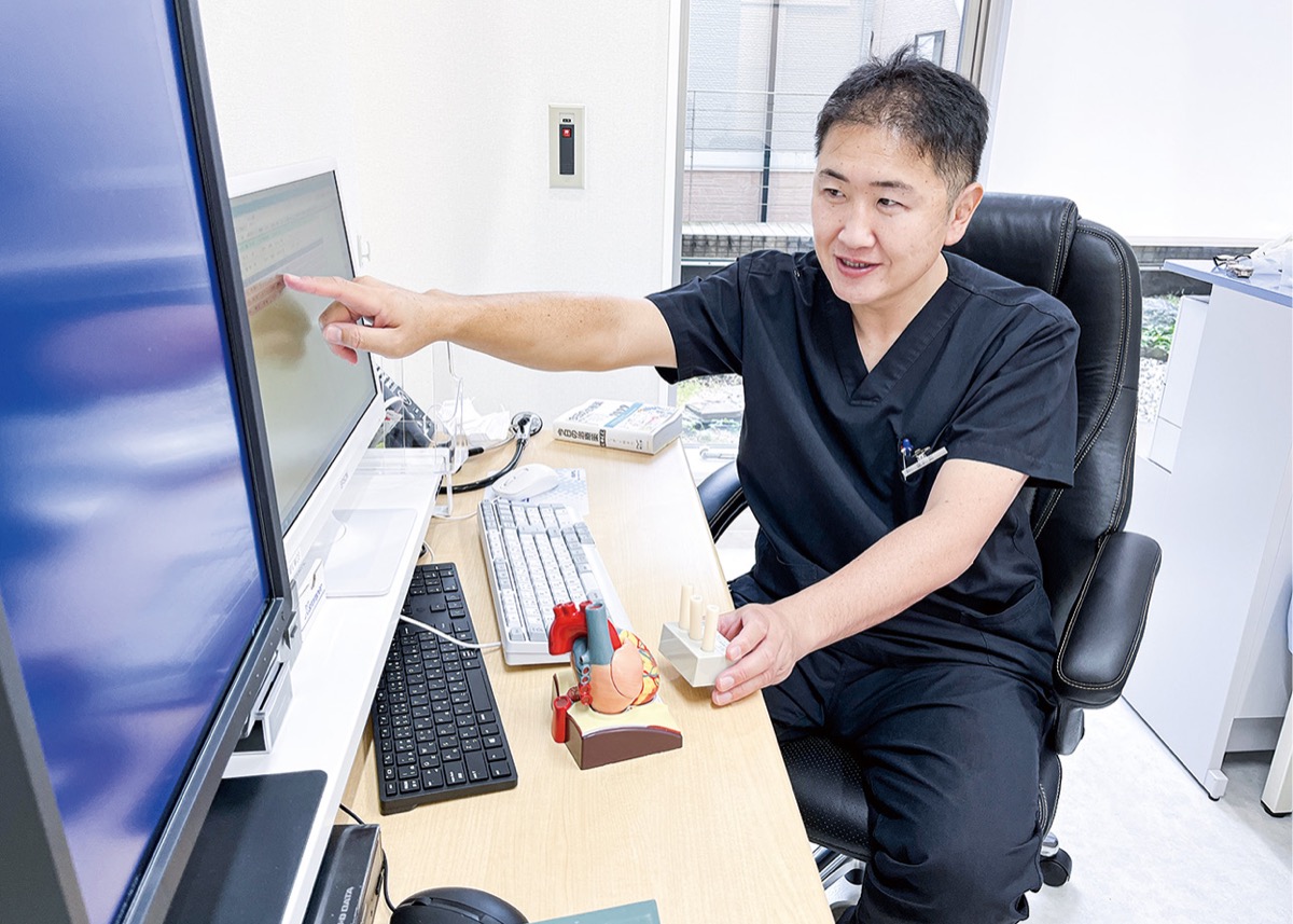 心臓血管や下肢静脈瘤治療、メディカルアートメイクを中心に提供。最も力を入れる下肢静脈瘤治療は、診察と超音波検査で原因を突き止め、一人ひとりに合わせた治療法を提案する。