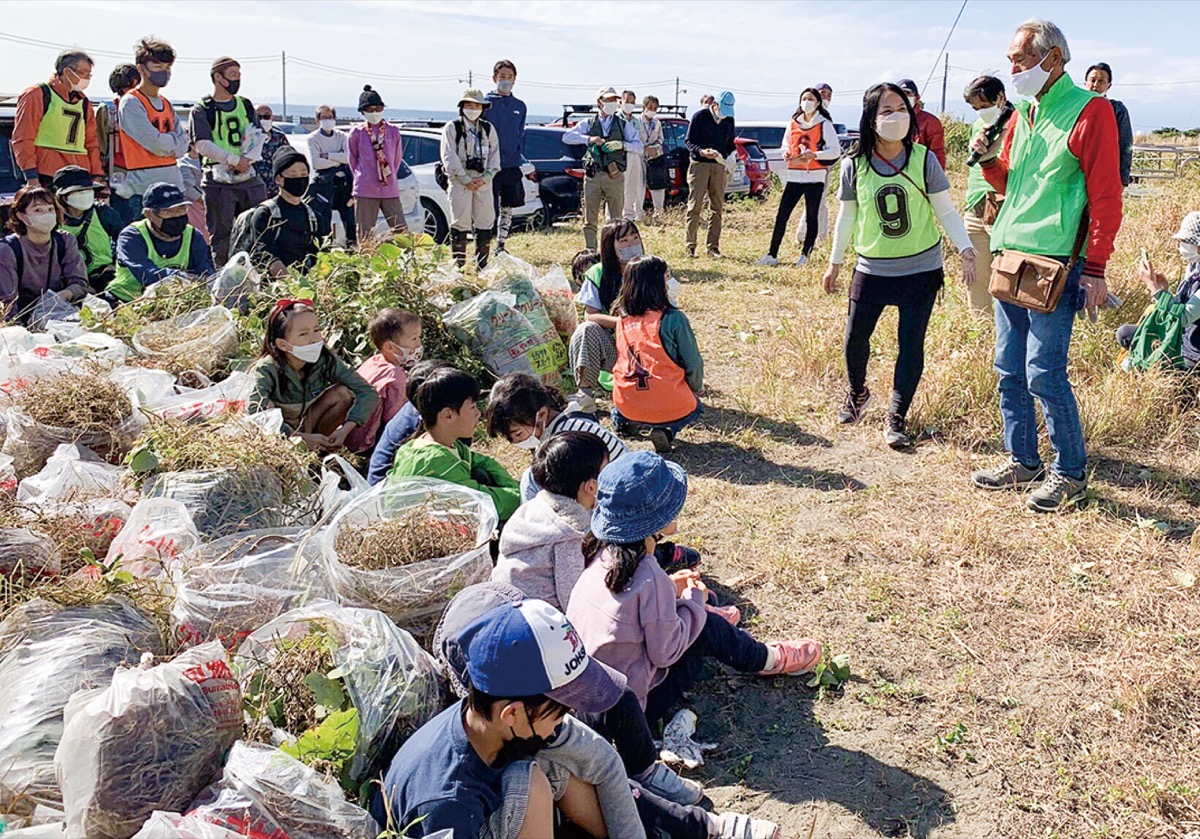 漁港駐車場とサイクリングロードの間に根付く、海浜植物(ハマヒルガオ、ハマボウフウ)を侵食する外来植物を除草し、緑豊かな海岸を取り戻すことを目的とした同イベント。参加者は茅ヶ崎市景観みどり課の職員からアドバイスを受けながら1時間ほど除草作業に取り組んだ。終了後には除草前と比べ、ハマヒルガオの緑の葉が鮮やかに浮かび上がり、参加した子どもたちからは「楽しかった」と喜びの声が上がった。