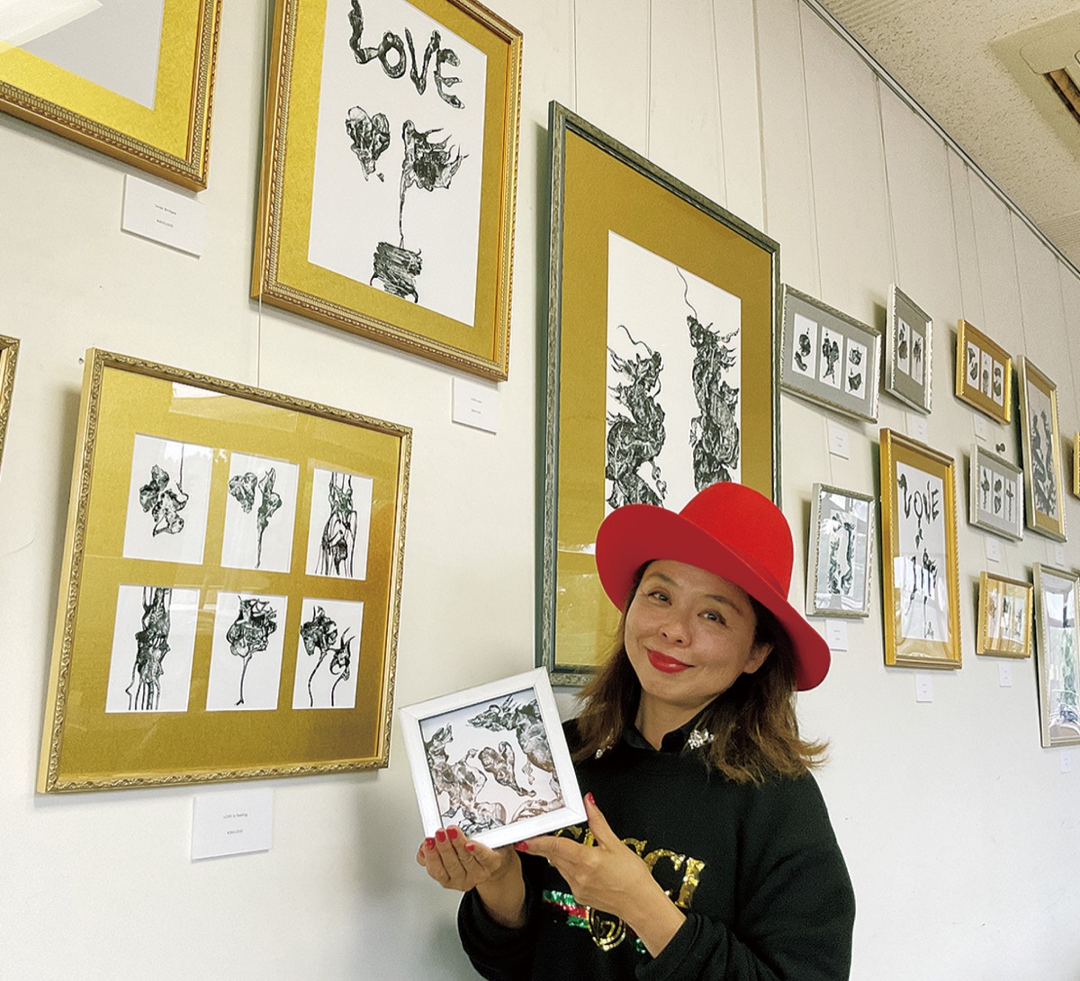 20歳でニューヨークに渡り、ハリウッドスターやセレブ、政治家まで幅広くメイクを手掛けてきたTAKAKOさん。「幼い頃から絵を描くことは好きだった」というが、茅ヶ崎に住むようになって前衛書家・石井抱旦さんと出会ったことなどをきっかけに、独自の画風にたどり着いた。