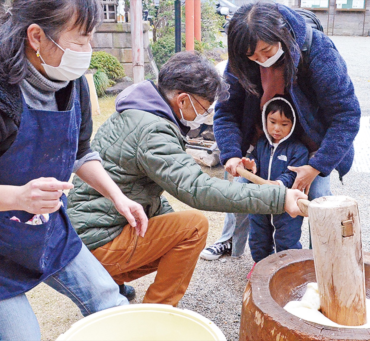 当日は午後になって寒さが強まる中、「ヨイショ、ヨイショ」と威勢よく餅がつかれ、集まった子どもたちがおいしそうに頬ばっていた。木村邦佑住職は「伝統文化を守りつつ、大勢で食べるとおいしいと感じてくれたら」と話した。