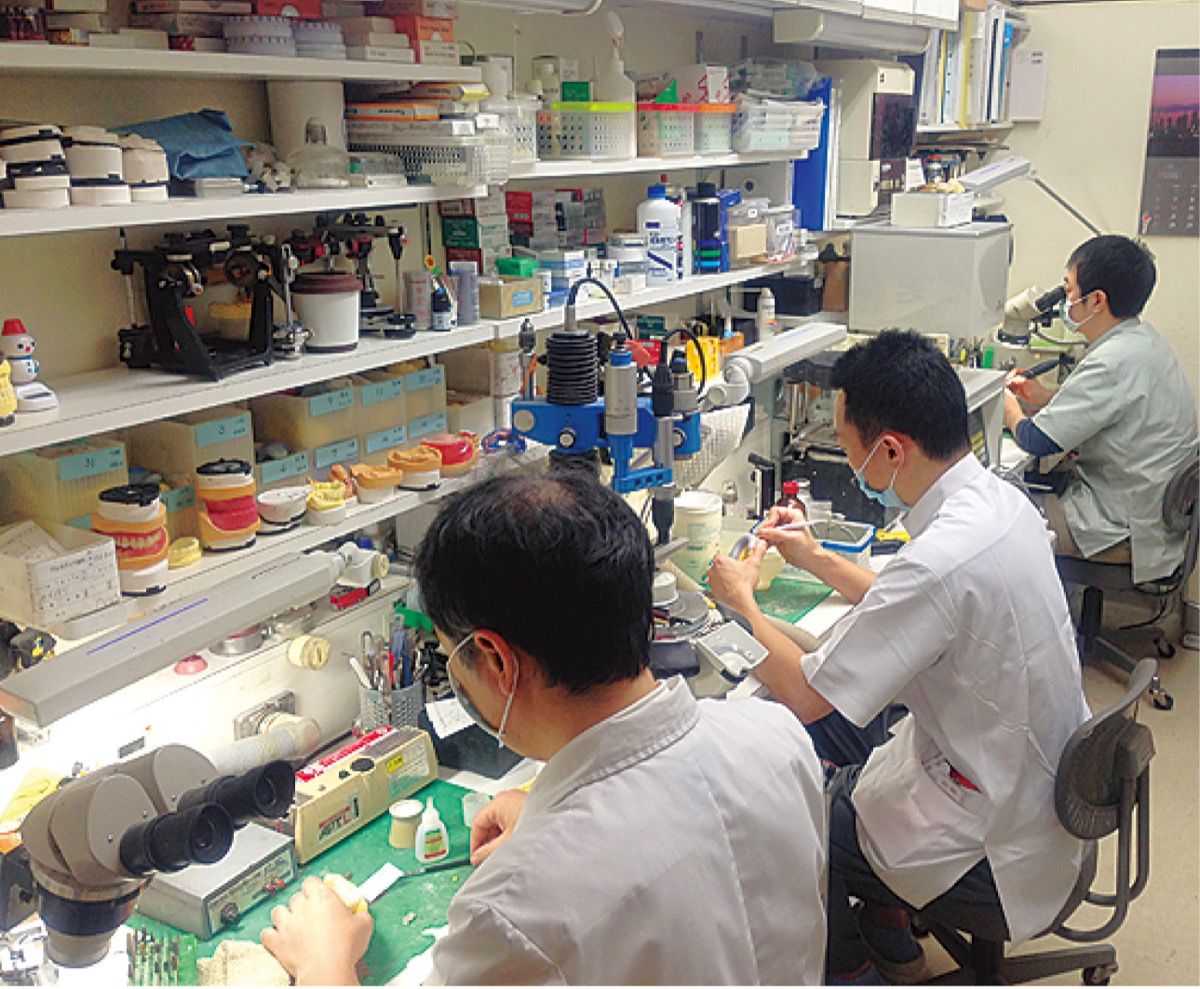 入れ歯、特に総義歯は、インプラントや歯周病治療とは比較にならないほど高い歯科技術が必要だといわれている。「だからこそ総義歯の真の専門医制度が必要」と角田院長は話す。角田院長は専門的に入れ歯、特に総義歯を研鑽して約40年。「何軒もの歯科医院で入れ歯を作っても良くならない難症例を800以上手掛けています。噛める(入れ歯での最高限度)、外れない、浮かない、入れ歯安定剤も要らない入れ歯を作り、皆様に笑顔で老後を過ごしていただきたい」。また、良い入れ歯作りには「外注技工でなく、院内に先進の入れ歯精密製作設備(BPSシステムや精密ミリングマシーンなど)と常勤の入れ歯専門技工士が必要」と感じ、35年前から院内技工所を併設。診療室内で臨床的に技工士と一緒に患者を診て、入れ歯を作ることができる。「より患者様の要望を満たすためにセラミック、入れ歯、保険技工専門の常勤技工士3名と先進技工設備機器を完備しています。一般的なクラスプ義歯、金属の見えない数ある審美義歯の中でも最高度、最高級のアタッチメント義歯、コーヌス義歯、自費でも比較的安価なノンクラスプ義歯やコンフォート義歯まで、さらに保険も含めた全ての種類の入れ歯を網羅しています」と角田院長は思いを話す。