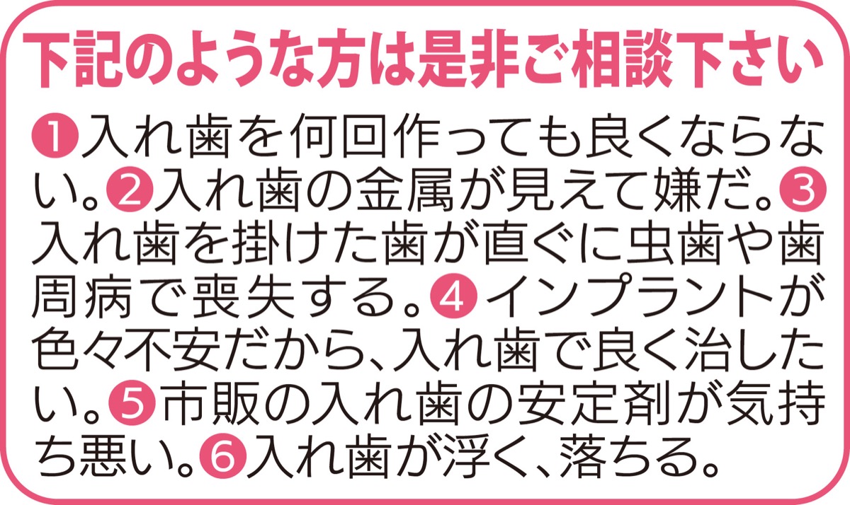噛める、痛くない、外れない入れ歯で快適生活