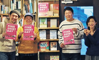 午後4時から6時までは、来場者によるメッセージの掲示や、ピンクシャツデーにちなんだ書籍の展示、コーヒーやライブで使用するピンク色に光るブレスレット(300円)の販売を行う。同所の池田美砂子さんは「いじめストップと頭で考えるのではなく、ライブなどを通じて、人とのつながりを感じてほしい。取り組みを知ってもらうためにも、ぜひSNSで『#ピンクC』をつけて写真やメッセージの投稿を」と話す。