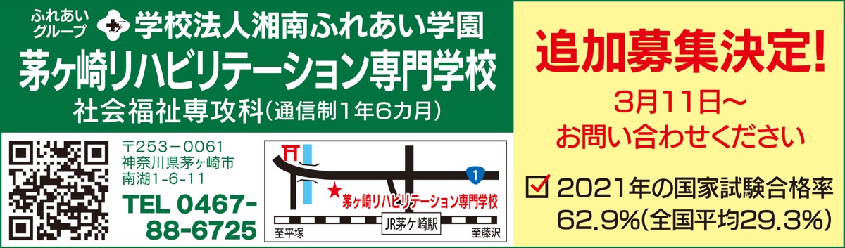 福祉、医療現場での活躍が注目を集める国家資格「社会福祉士」。病院や介護施設も運営するふれあいグループの茅ヶ崎リハビリテーション専門学校は、4月入学の受講生の追加募集を決定した。受講期間は1年半、定員80人。個別相談会あり。