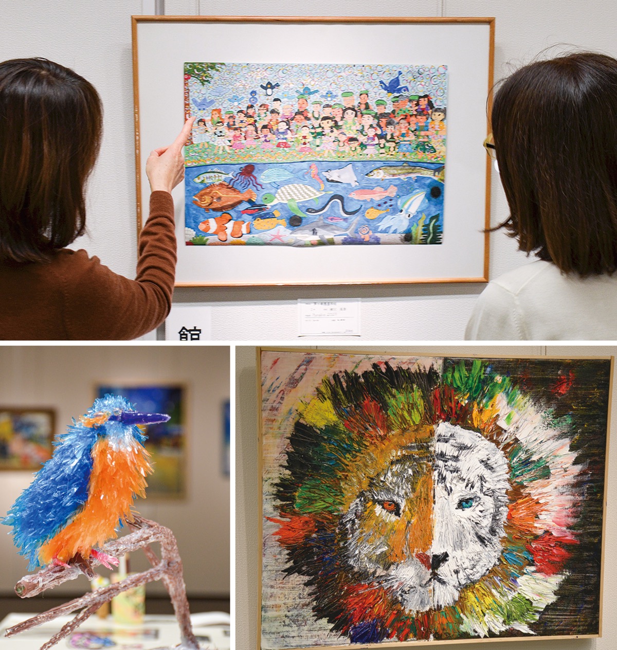 審査の結果、「館長賞」には「Paradise 2023」(茅ケ崎養護学校2年、柳父風香さん)が、「芸術魂賞」には「白黒」(寒川高校1年、山浦大輝さん)が選ばれた。