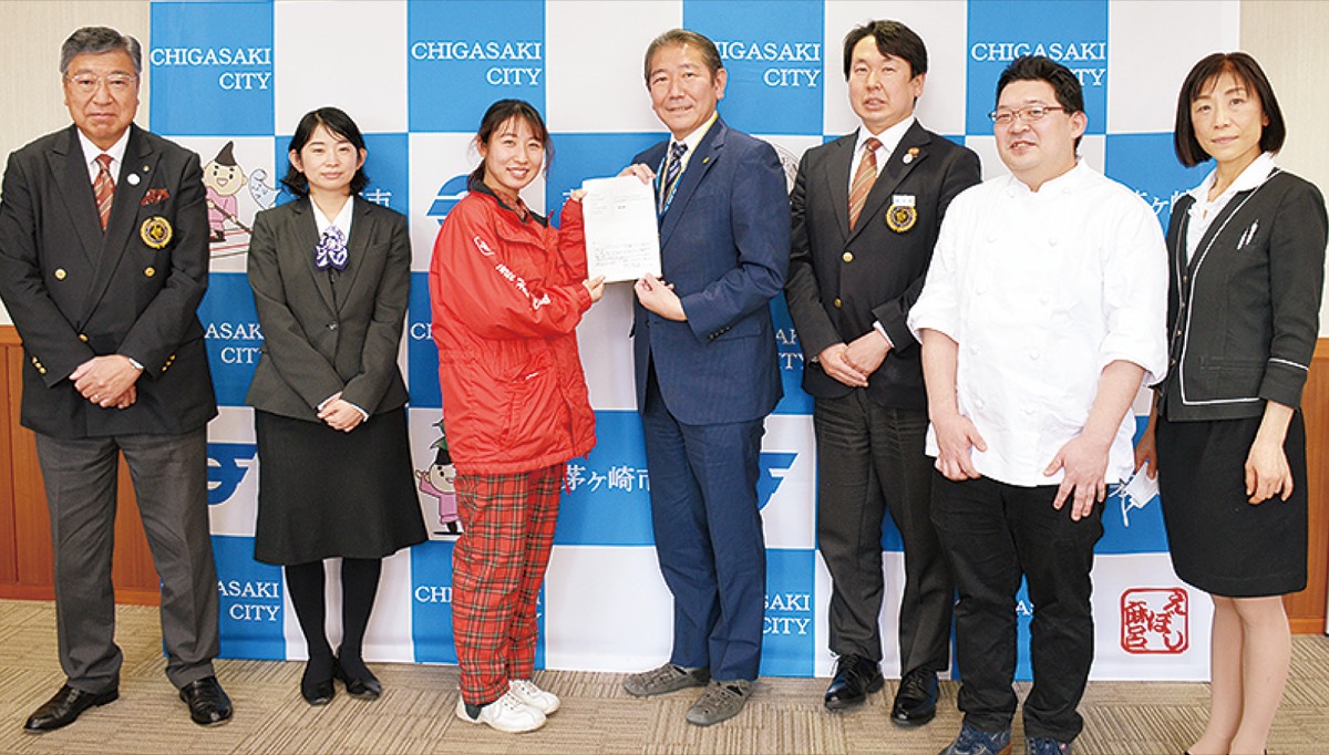 甘沼のゴルフ場「スリーハンドレッドクラブ」のスタッフが2月17日、茅ヶ崎市役所を訪問し、昨年12月から今年1月に実施したクリスマスチャリティーの報告書を佐藤光市長に手渡した。