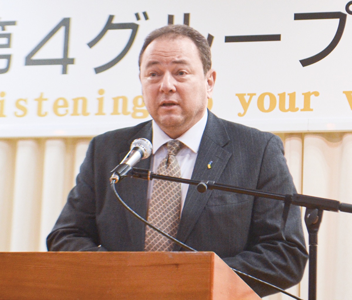 在日ウクライナ大使館特命全権大使のセルギー・コルスンスキー氏が5日、茅ヶ崎中央ロータリークラブ(以下RC)をはじめ、近隣のRCによるインターミーティングに出席した。コルスンスキー氏は特別講演を行い、茅ヶ崎市内の避難民に対する支援に感謝を示すとともに、ロシア侵攻によって引き起こされた惨状についても説明した。