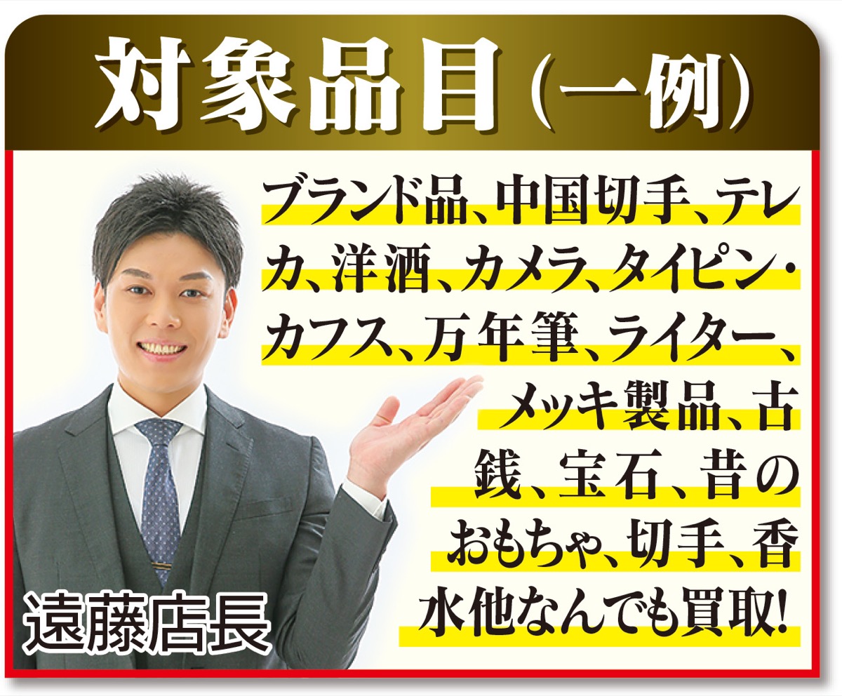 同期間「未使用テレカ」は50度1枚300円以上で必ず買い取る。「買い物ついでにお立ち寄り下さい。この機会に査定を」と遠藤店長。