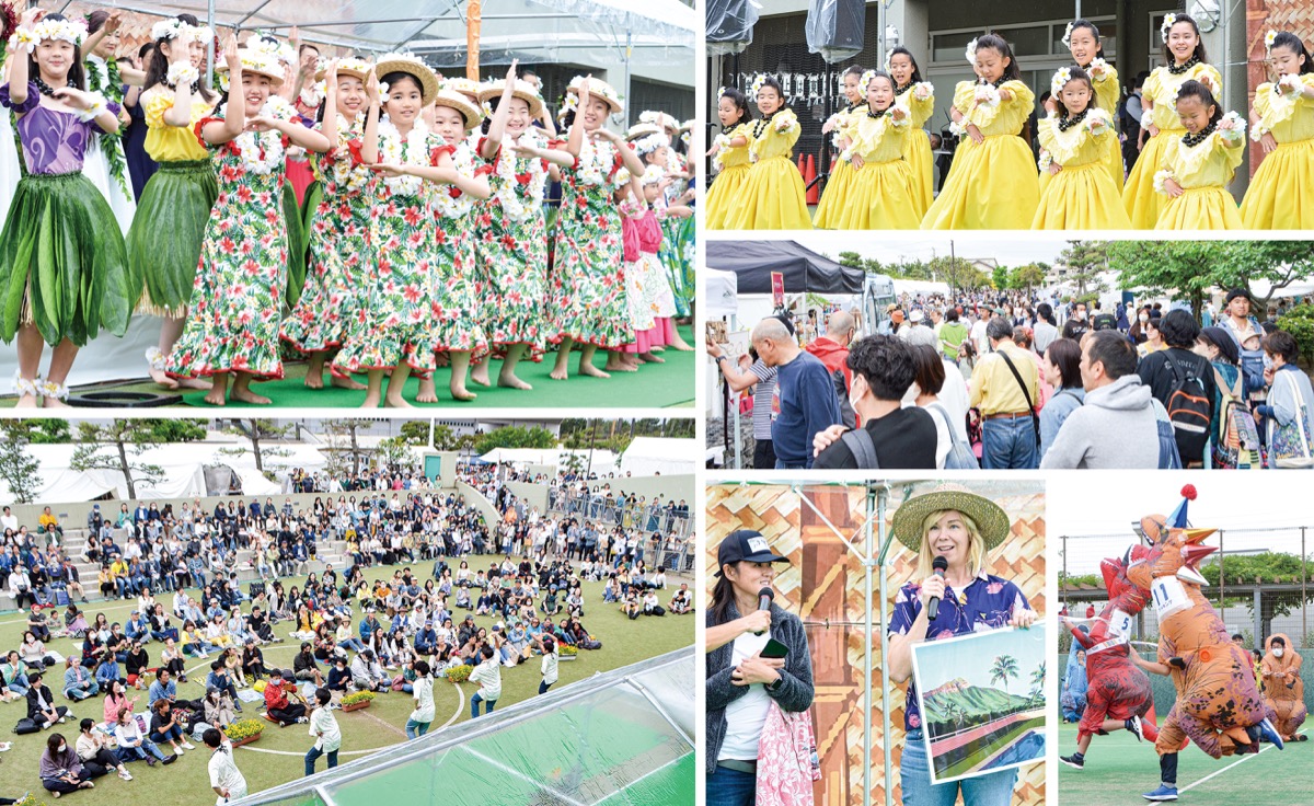 加えて、人気のウクレレ教室やステンドグラスのキーホルダーづくり、フラの体験などのワークショップも好評。テニスコートで行われた恐竜のコスチュームを着て競走するチガノサウルスレースにも観覧者が多数詰め掛けるなど、2日間で延べ1万7500人がハワイ気分を楽しんだ。