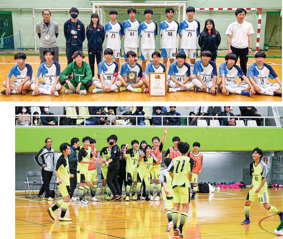鶴嶺高校男子フットサル部=写真上=(吉田佑樹顧問)が5月、横浜市と藤沢市で行われた全日本U-18フットサル選手権大会神奈川県大会で準優勝し、県内公立高校では初となる関東大会出場権を得た。