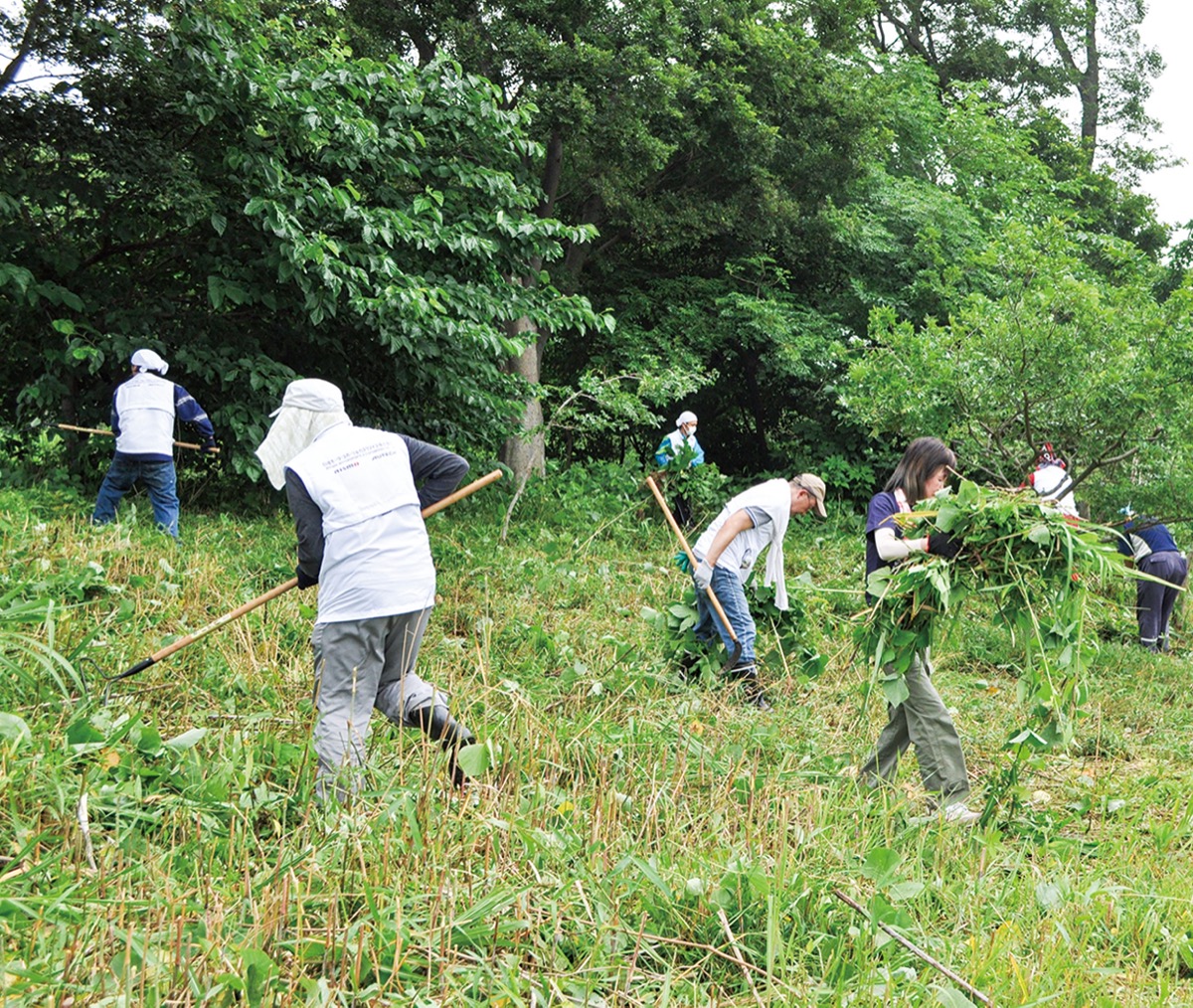 市民団体と企業が草刈り