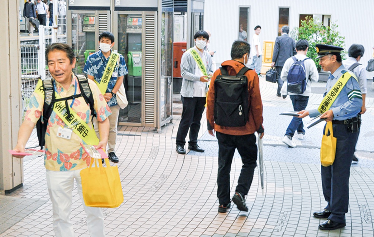 茅ケ崎警察署や交通安全協会、茅ヶ崎南・小和田両地区のまちぢから協議会、シルバー人材センター、市安全対策課から約50人が参加。幸町と本宿町にある自転車駐車場とその周辺で、帰宅途中の自転車利用者や通行人らに啓発品を配りながら「夜間はライト点灯を忘れずに」「盗難防止のために鍵をかけましょう」などと呼びかけた。