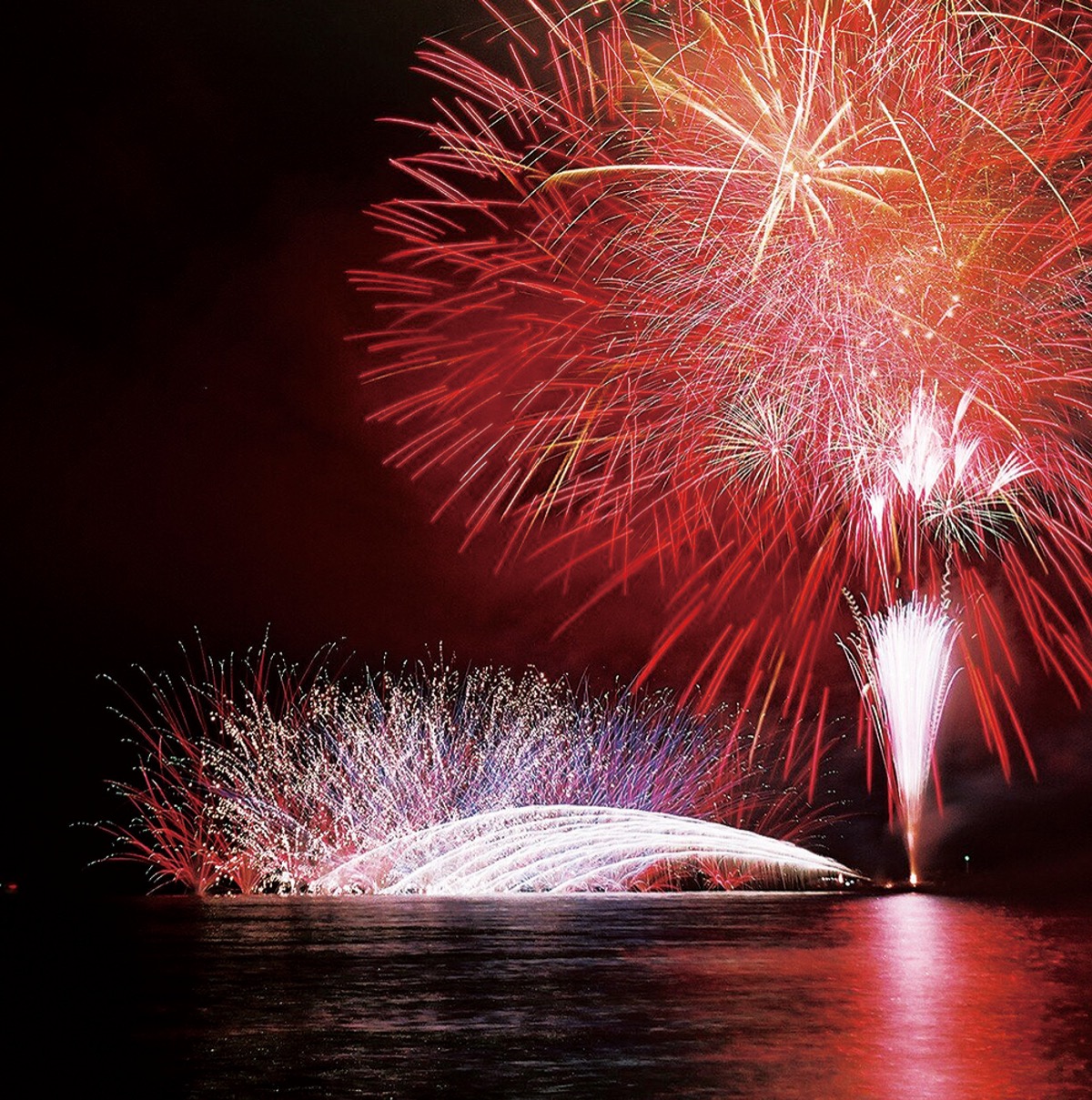 今年は約2000発と従来に比べ若干規模を縮小するが、連続打ち上げ花火「スターマイン」や、孔雀が羽を広げたように海面から打ちあがる「水中孔雀」などが夜空を彩る。有料観覧席(1140席)の開設も決まり、7月8日から販売が始まった。