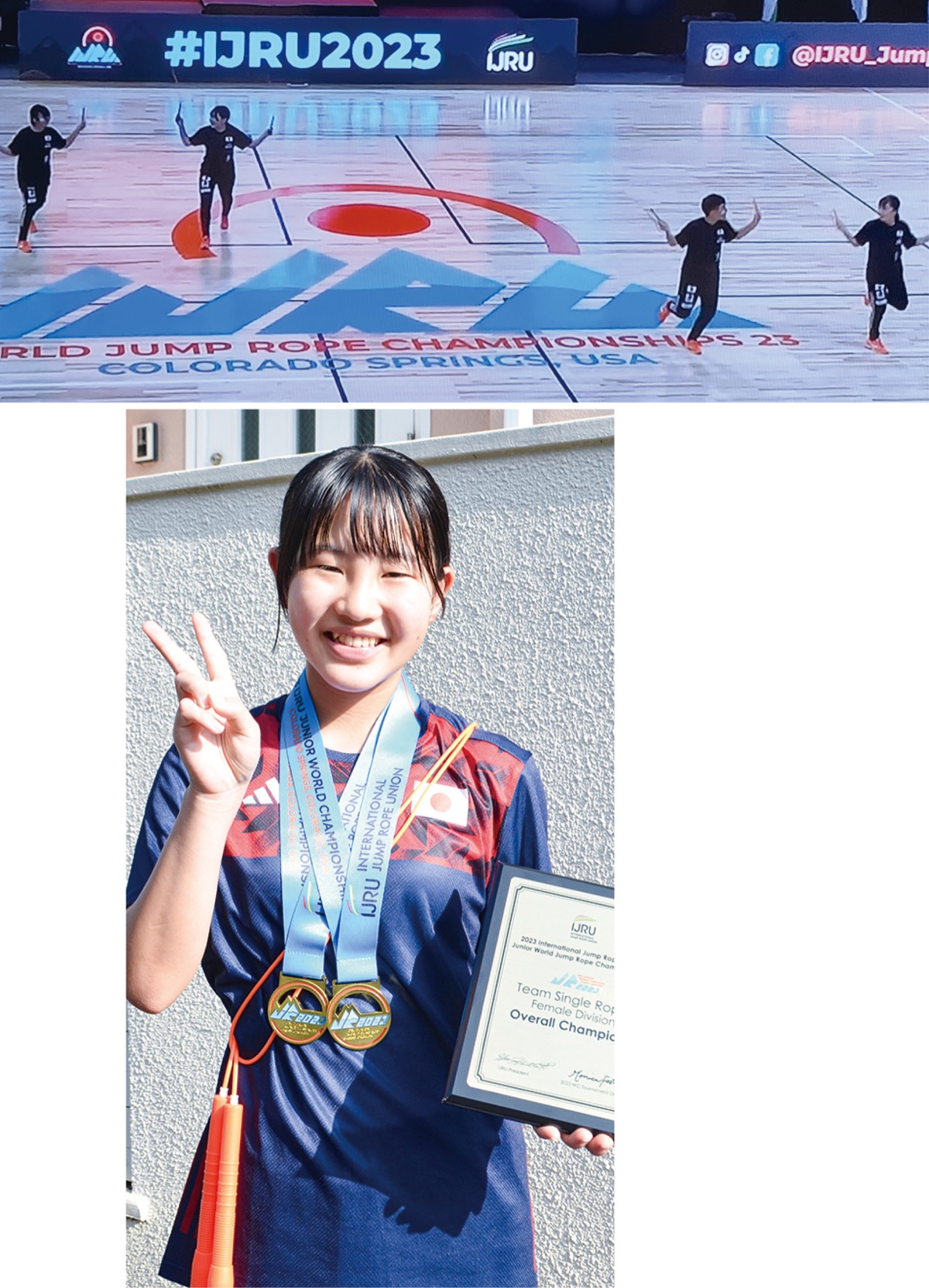 米国・コロラド州コロラドスプリングスで7月に世界26カ国を集めて行われたジャンプロープの世界大会で、松林中学校3年の近藤咲来(さら)さんがジュニア女子(小学5年生〜14歳)部門で団体優勝を果たし、世界の頂点に輝いた。近藤さんは出場した4種目中、2種目で優勝するなど、チームの活躍に大きく貢献した。