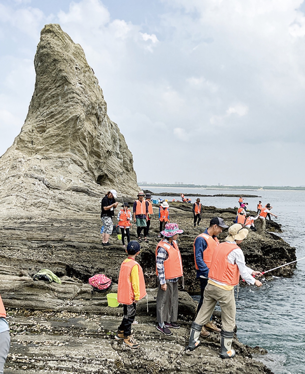 通称「烏帽子岩」で知られる姥島で8月20日、小中学生と保護者を対象にした釣り体験と磯の生き物の観察会が行われ、10組27人が参加した。茅ヶ崎公園体験学習センターうみかぜテラス主催の「環境まなび講座」。