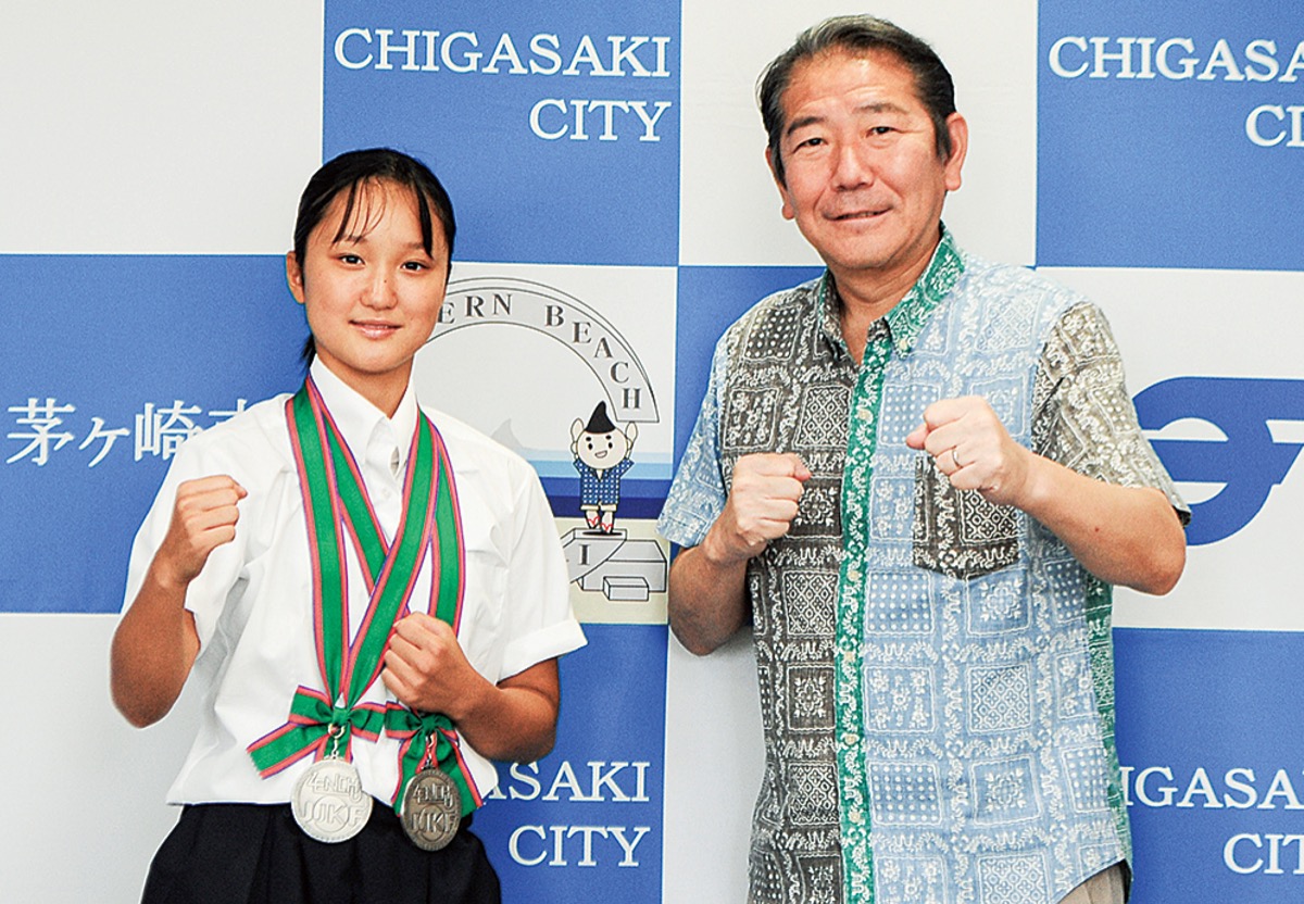 東京武道館で8月3日と4日に開催された第31回全国中学生空手道選手権大会で、市内在住の林愛彩(まあや)さん(3年)が女子組手の個人・団体でダブル準優勝を遂げた。8月28日に佐藤光市長を表敬訪問し、2つのメダルを披露。「いつも一番近くで支えてくれる両親と兄、空手道部の先生、多くの方の支援のおかげで全国大会に出場することができた」と感謝を述べた。