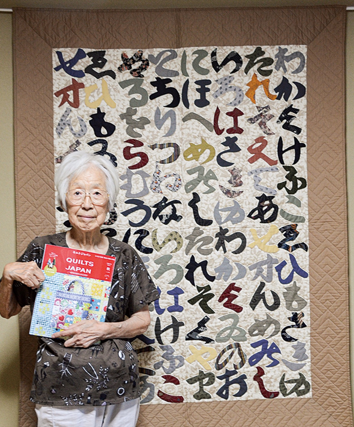 「個展はたくさんの人が来てくれてうれしかった」。多くの来場者に対応する中、雑誌の取材も対応した。「まさかこんなに大きく載るなんて」と驚く。見開きのもう1ページで紹介された、白寿でキルトを教える女性からも電話が。「同年代のキルト仲間がいてうれしい」という話も早々に、雑誌の写真を見て「『なぜそんなにきれいに立っていられるの』など、健康の話で盛り上がったの。本当ならば飛んでいきたいけれど、そのうち伺いますね、って」とにこり。