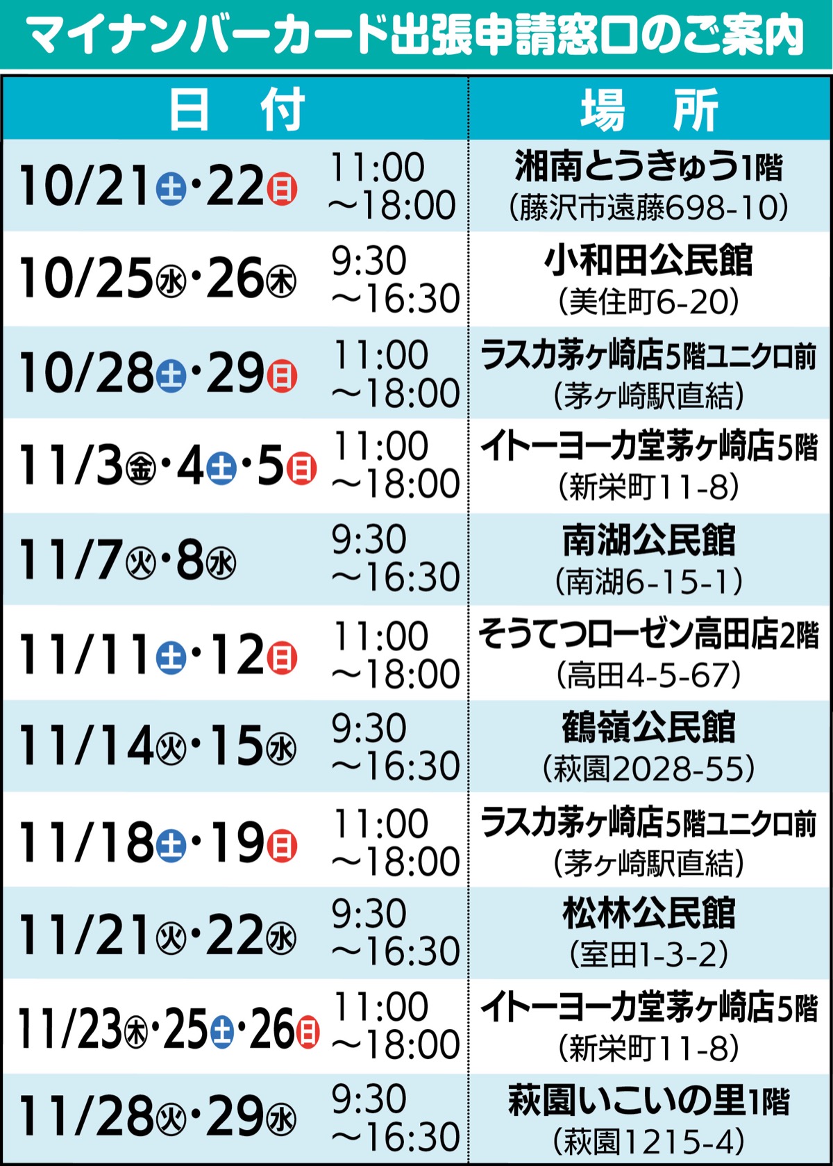 茅ヶ崎市は市民の負担軽減のため、市内各所でマイナンバーカード申請の出張サポートを行っている。10月は「湘南とうきゅう」で初めて実施予定だ。