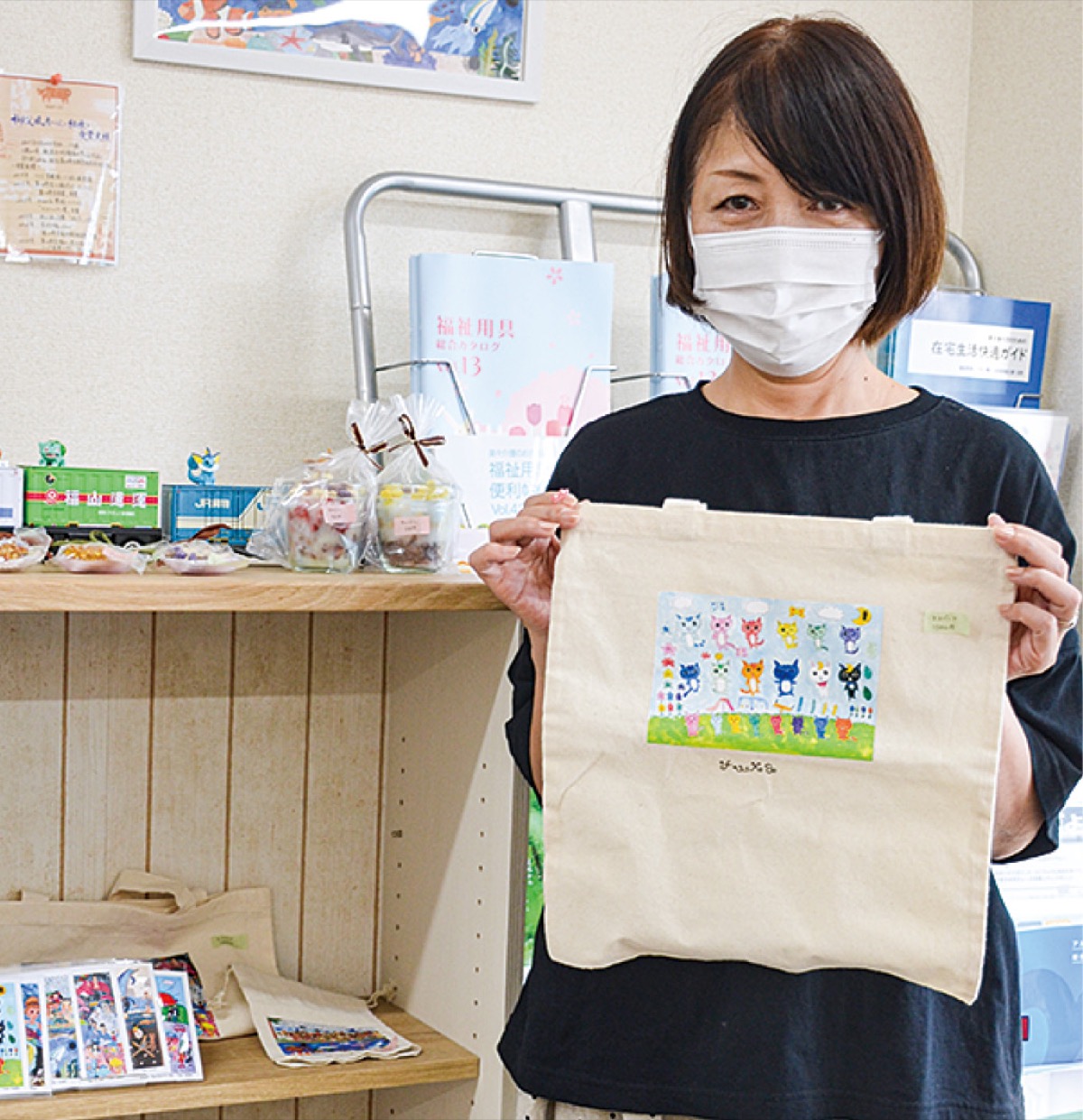 作品を使用したグッズの販売も始まった。取り扱う店の一つ福祉用具専門店「明」(出口町)では、半年ほど前からレジ横でFukaさんの作品を販売。尾崎明子さんは「イベントで作品を見て一目ぼれした」と笑顔を見せる。また「プカナラ イコール マーケット」(東海岸北)の内山ゆかりさんは、自身も知的障害のある息子がいることなどから、福祉作業所で制作された製品を販売している。「支援アプリを入れた際にすごく素敵な作品だと思った。ぜひ多くの人に彼女のことを知ってほしい」と話す。