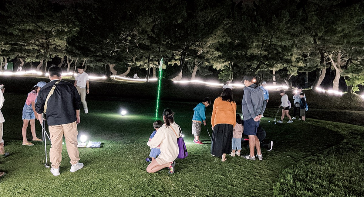 イベントは日が暮れた午後5時半にスタート。会場では暗闇でも光るボールを使ったナイトパターやナイトゴルフ、芝生の上でのグラスヨガ、最新の弾道測定器を使用した「ニアピン体験」などが行われた。
