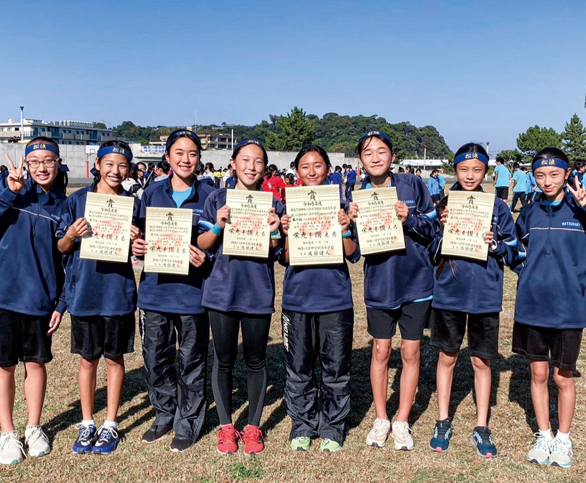 また松浪中は、11月3日に横浜八景島・海の公園周回コースで行われた県中学校女子駅伝大会で9位入賞を果たした(入賞は10位まで)=写真。常磐教諭は「途中まで関東大会出場圏内につけるなど、持っている力を存分に発揮してくれた」と話していた。