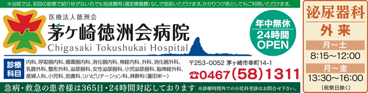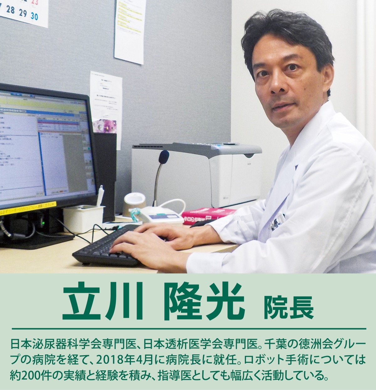 地域の拠点病院として365日24時間、市民の健康を支えている「茅ヶ崎徳洲会病院」。超高齢化社会を迎え、さらに需要が高まっている「泌尿器科」に力を注いでいる。同院における最新の治療法や検査方法について、茅ヶ崎徳洲会病院の日本泌尿器科学会専門医の立川隆光院長に聞いた。【取材協力・茅ヶ崎徳洲会病院】