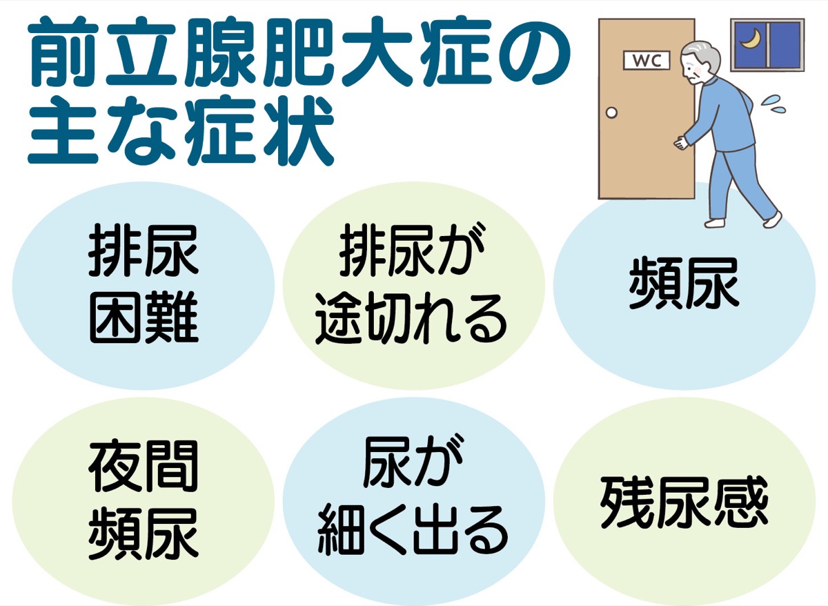 男性の尿道を囲む前立腺が肥大することで、尿道が圧迫され、尿の排出が困難になる「前立腺肥大症」。主な症状として、排尿困難・頻尿・尿が細く出る・排尿が途切れる・夜間頻尿・残尿感などが挙げられる。