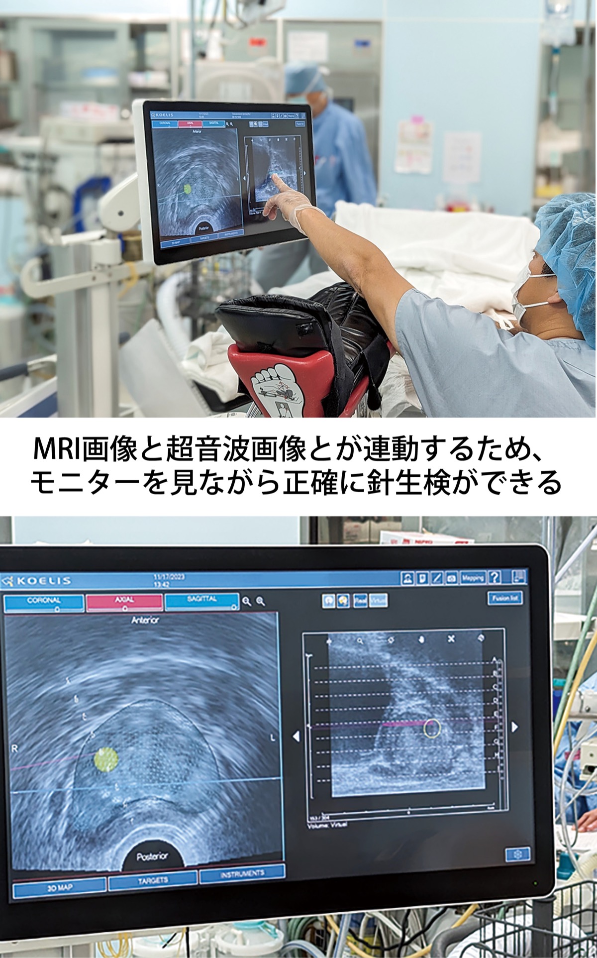 「どの部位にがんが浸襲しているのか」「前立腺の内部の情報」が最もよく分かるのが、MRIだが、がんが疑われる部位の組織を調べる針生検は同時には行えない。