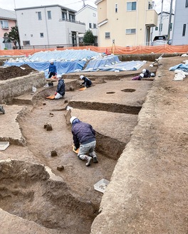 茅ヶ崎市教育委員会は12月16日、同遺跡の現地説明会を開催する。午前11時から正午までと午後1時30分から2時30分までの2回。古墳の周溝(溝状の遺構)のほか、奈良・平安時代の集落跡、鎌倉から戦国時代にかけての区画溝なども確認することができる。小雨決行、荒天中止。駐輪・駐車のためのスペースはないため、徒歩での来場を呼びかけている。