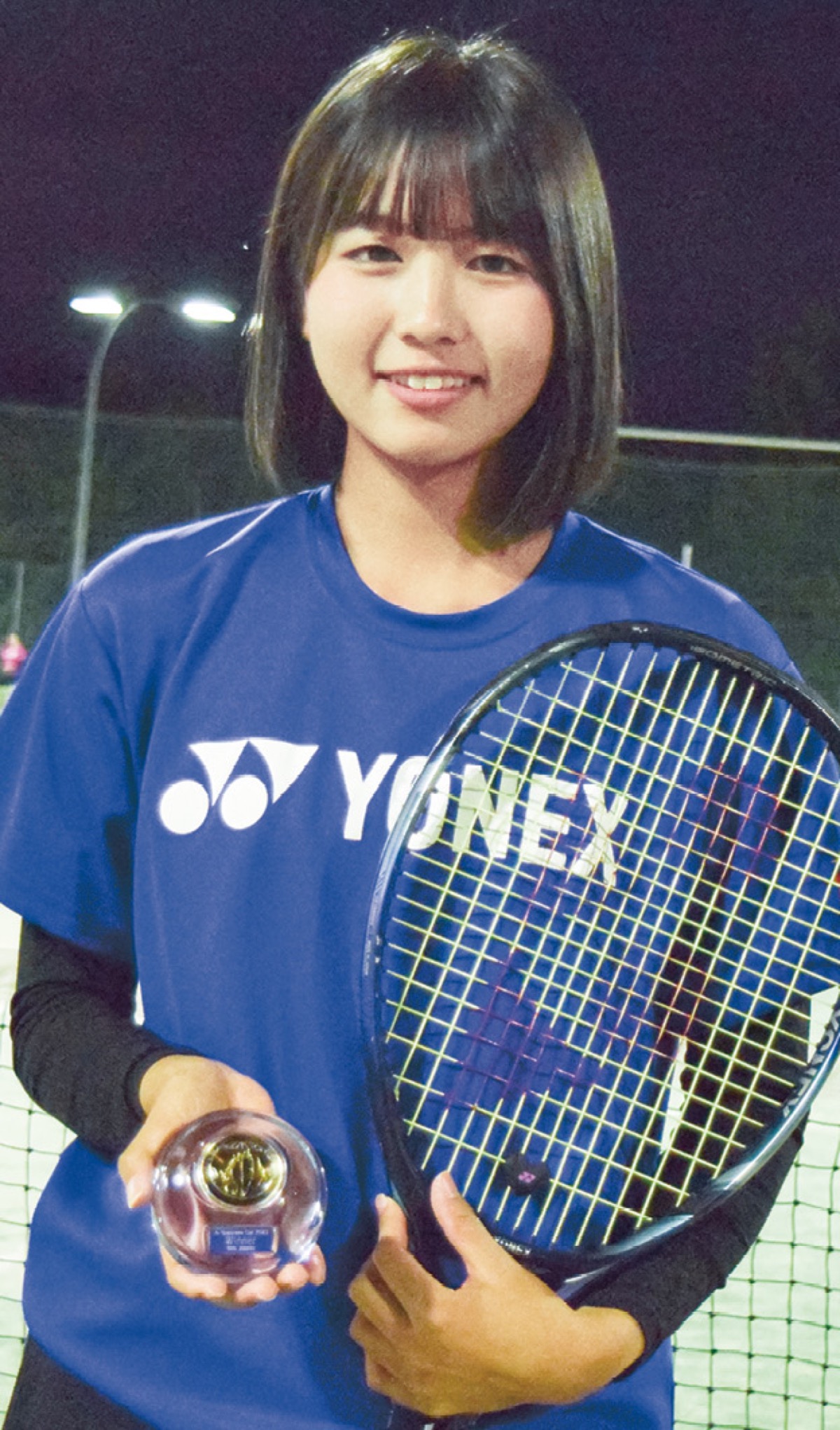 小1でテニスを始めた布川さんは、速い球で相手のペースを崩すスタイル。直前に右足のじん帯を痛めたが「ペアを組む稲場選手がボレーなどで展開を早くしてくれ、得意のテニスができた」と頂点まで駆け上がった。「数日たって実感がわいた」と布川さん。「プロになりたい」と話した。