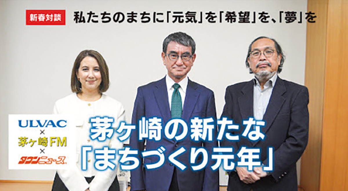タウンニュース茅ヶ崎版元旦号とともに元日に発行した「新春対談特別号」の内容は「茅ヶ崎ライフスタイルwebマガジン#ちがすき」でも掲載しています。河野太郎デジタル大臣、茅ヶ崎エフエムメインパーソナリティの政井マヤさん、宮治淳一さんによる鼎談、株式会社ULVAC・岩下節生社長へのトップインタビューをご覧いただけます。