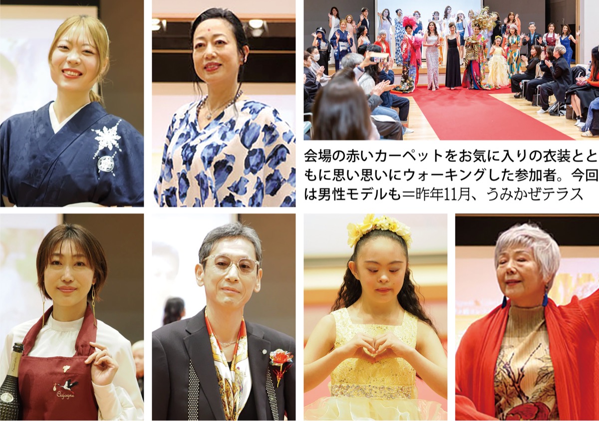 カジュアル・ドレスアップ・和装の3部門で実施。2022ミセス・ミズアース世界大会で準グランプリを獲得した、主催者の石黒あかねさんによる指導の下、参加者はウォーキングレッスンを受けて臨んだ。本番では会場に敷かれたレッドカーペットをお気に入りの衣装で堂々と歩き、皆目を輝かせていた。