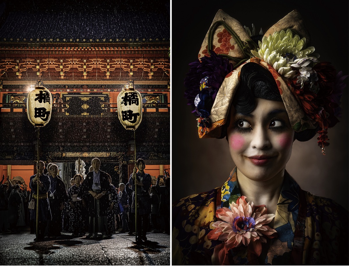 選ばれたのはルポルタージュ・フォトジャーナリズム部門の「神田祭」とナチュラルポートレート部門の作品(無題)。「神田祭」は神田明神への宮入の場面をとらえたもので、浮世絵的な雰囲気をのぞかせる。もう一つは泉鏡花の戯曲「夜叉ヶ池」に登場する妖怪の一人を表し、表情の豊かさを生かした。2作品とも個展で展示される。小林さんは「『世界で通用するものを』と日本をモチーフに制作しているが、高みを目指す思いを作品から感じてほしい」と話す。期間中は小林さんも在廊する。