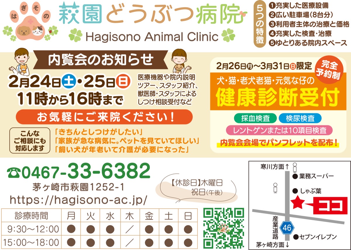 「萩園どうぶつ病院」が2月26日(月)、産業道路沿い、業務スーパー隣に新規開院する。