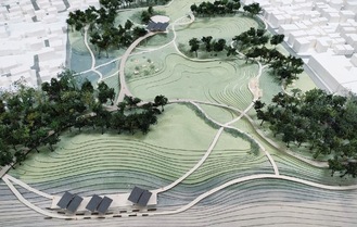 武蔵野美術大学4年生の田嶋小梅さん=人物風土記で紹介=が、茅ヶ崎公園周辺を「防災機能と居場所の融合」をテーマに制作した模型が3月18日(月)から24日(日)まで、クリエイティブスペースハヤシ(中海岸1の4の48)で展示される。