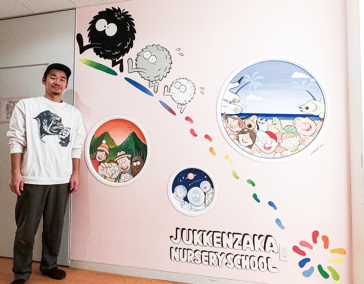 10年間にわたって自身の3人の子どもが通園していたことから、1月には同園踊り場に絵を描いたUNOさん。「3月で卒園する娘の在園中に、こんな形で足跡を残せることができて最高の思い出になった」と話した。