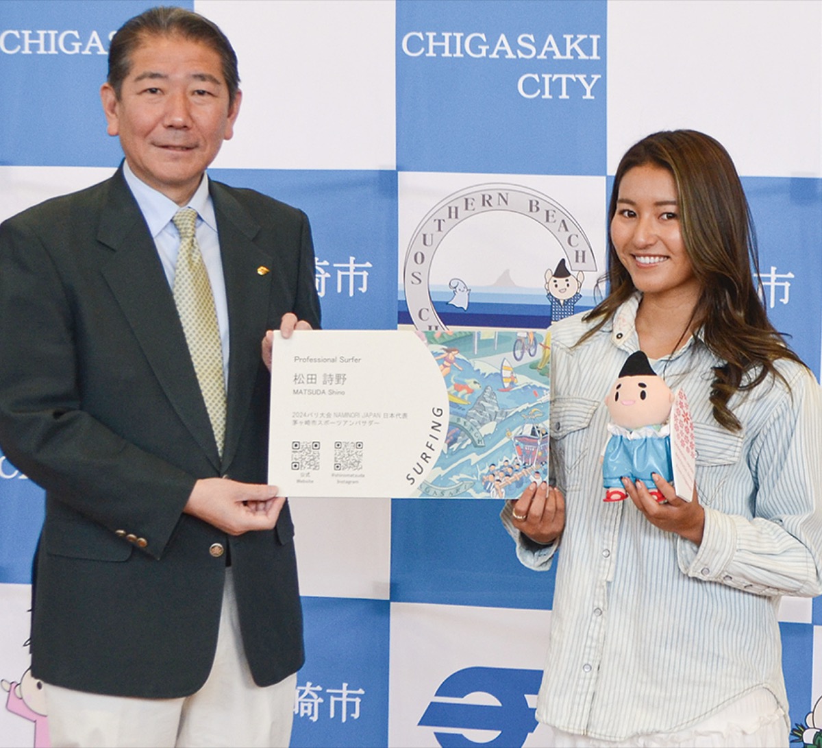 締結式で佐藤光市長は「努力してきた全てを開催地のタヒチに置いてきてほしい」とエールを送ったほか「3人目のスポーツアンバサダーとして、環境問題など未来を考えるのが茅ヶ崎のサーファーだと発信してくれれば」と語った。松田選手は「自分がしてもらったように、次世代も世界に羽ばたけるよう支援していきたい」と話した。