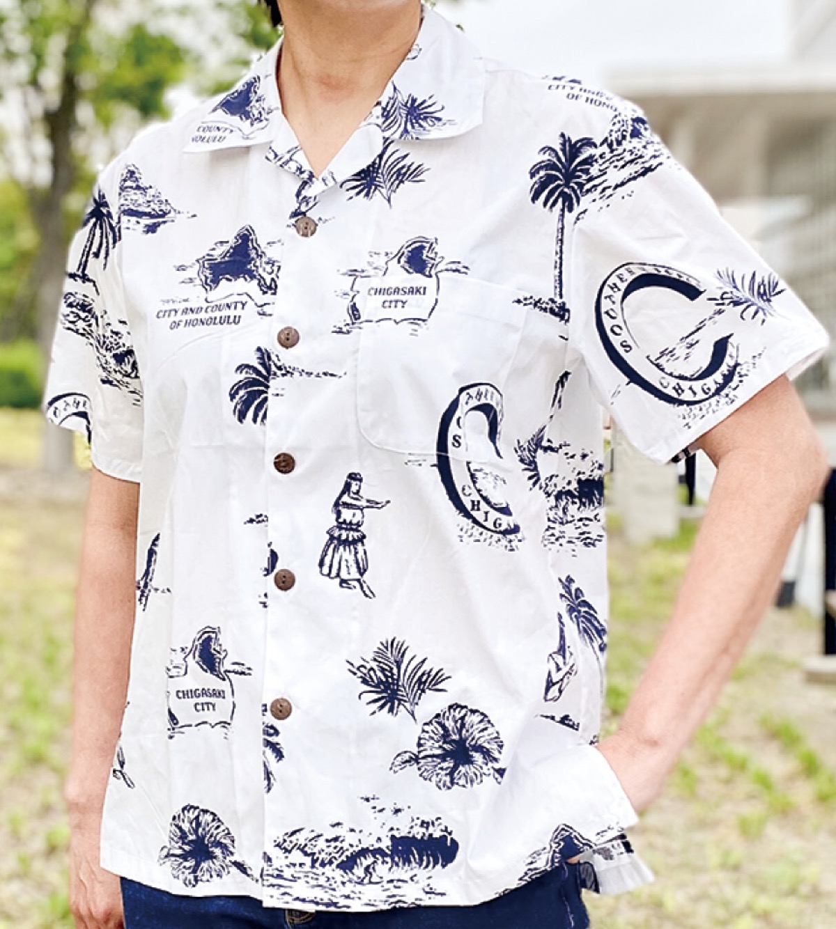 茅ヶ崎市観光協会では、オリジナルのアロハシャツを販売中。えぼし岩やサザンC、ホノルルのチャイナマンズハットとダイヤモンドヘッドのほか、フラで「アロハ」や「尊敬・敬う」を意味するポーズをデザインに採用している((問)同協会【電話】0467・84・0377) 。