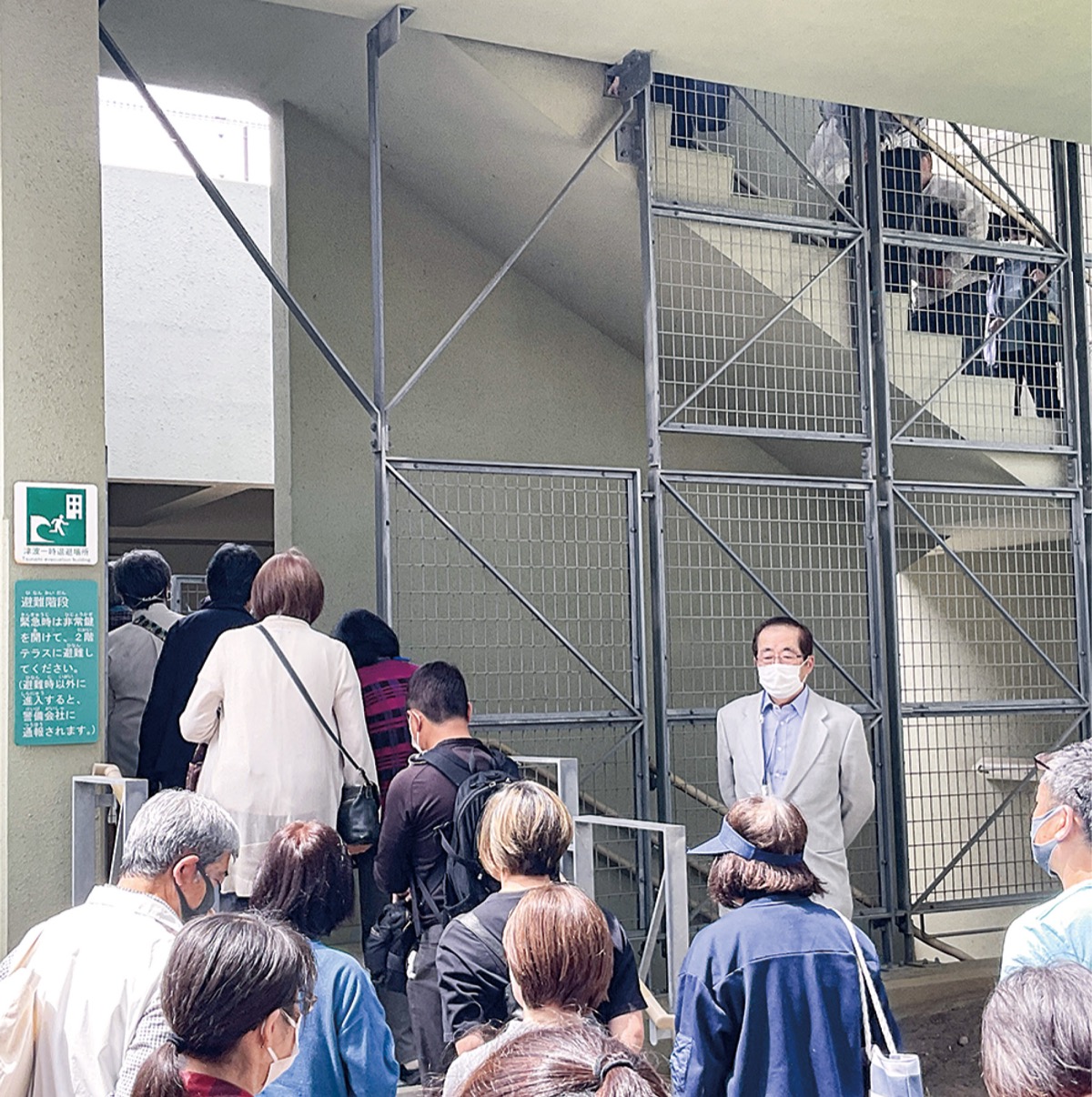 東海岸南一丁目自治会(丸山泰会長)は4月20日、「津波一時退避場所」に指定されている茅ヶ崎公園体験学習センターうみかぜテラスで避難・誘導方法と経路を確認した。能登半島地震を受けて企画され、同センターで住民を交えて現地確認を行ったのは初めて。