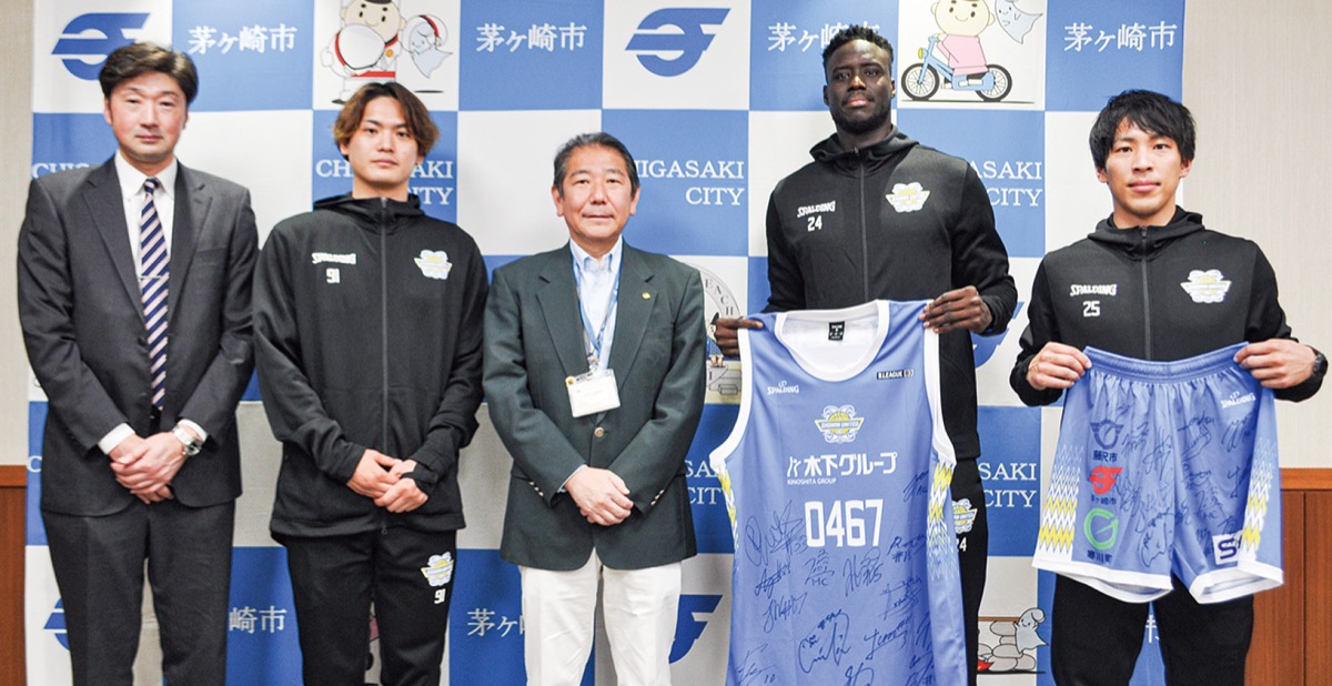 藤沢、茅ヶ崎、寒川の2市1町を拠点にプロバスケットボールB3リーグに参戦している湘南ユナイテッドBCの選手やスタッフが4月26日、茅ヶ崎市役所を訪れ、2023―24シーズンの終了を報告した。